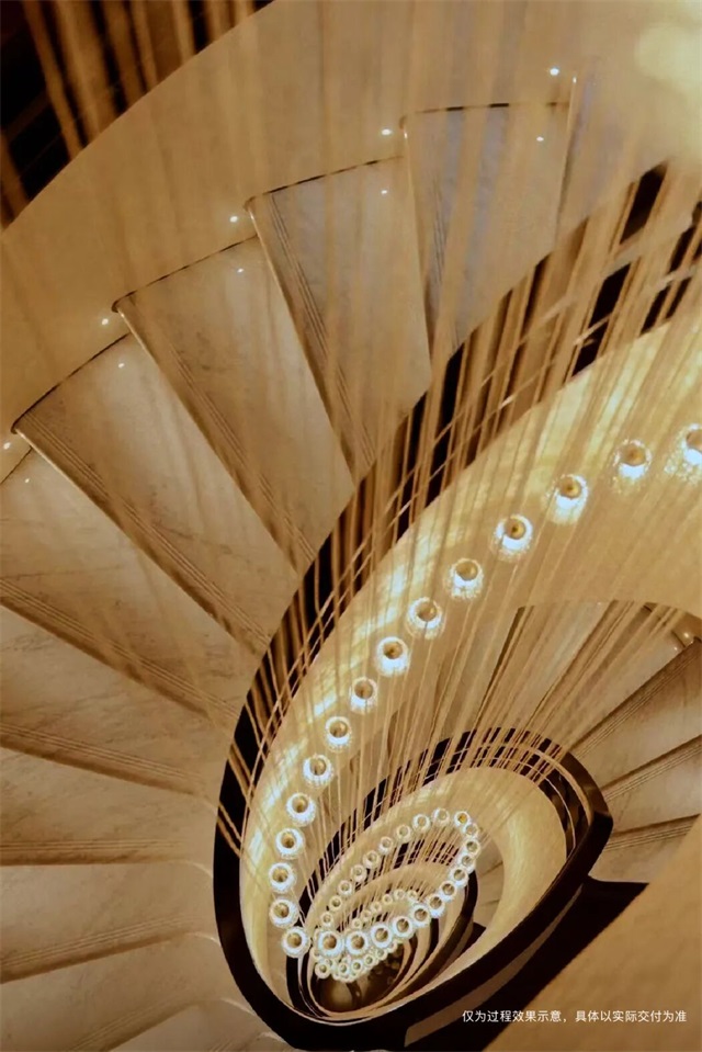 项目在细节处理上处处可见匠心,从石材仿古处理、手作艺术品,到旋转楼梯曲面造型、室内外材质衔接,皆体现对品质的追求。更通过立体庭院与退台设计,实现建筑、自然与生活的交融,打造会呼吸的庭院别墅。